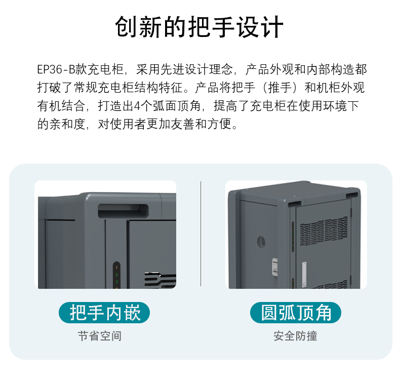 5.防傾倒設計:四輪突出于充電柜主體40mm-60mm,使得整機的穩固性更好,有效降低傾倒的風險,同時比較小的突出不會造成機柜對外部環境的干涉和安全隱患。★★★