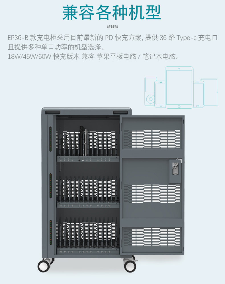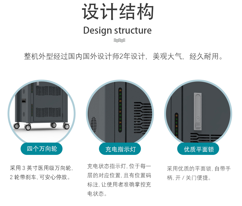 7.充電狀態顯示:在每一層的對應位置配備LED指示燈面板(采用PC材質,顯示清晰,美觀耐用),對每一臺電腦的充電狀態進行全面監測,充電中顯示紅燈,充滿顯示綠燈。★★★