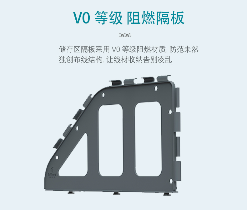 ⒉.擺放整齊:配備多功能塑膠隔板(阻燃材質),隔板上配備有理線槽,實現充電線整齊規范排布,美觀方便,隨用隨取。★★