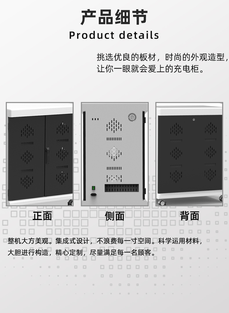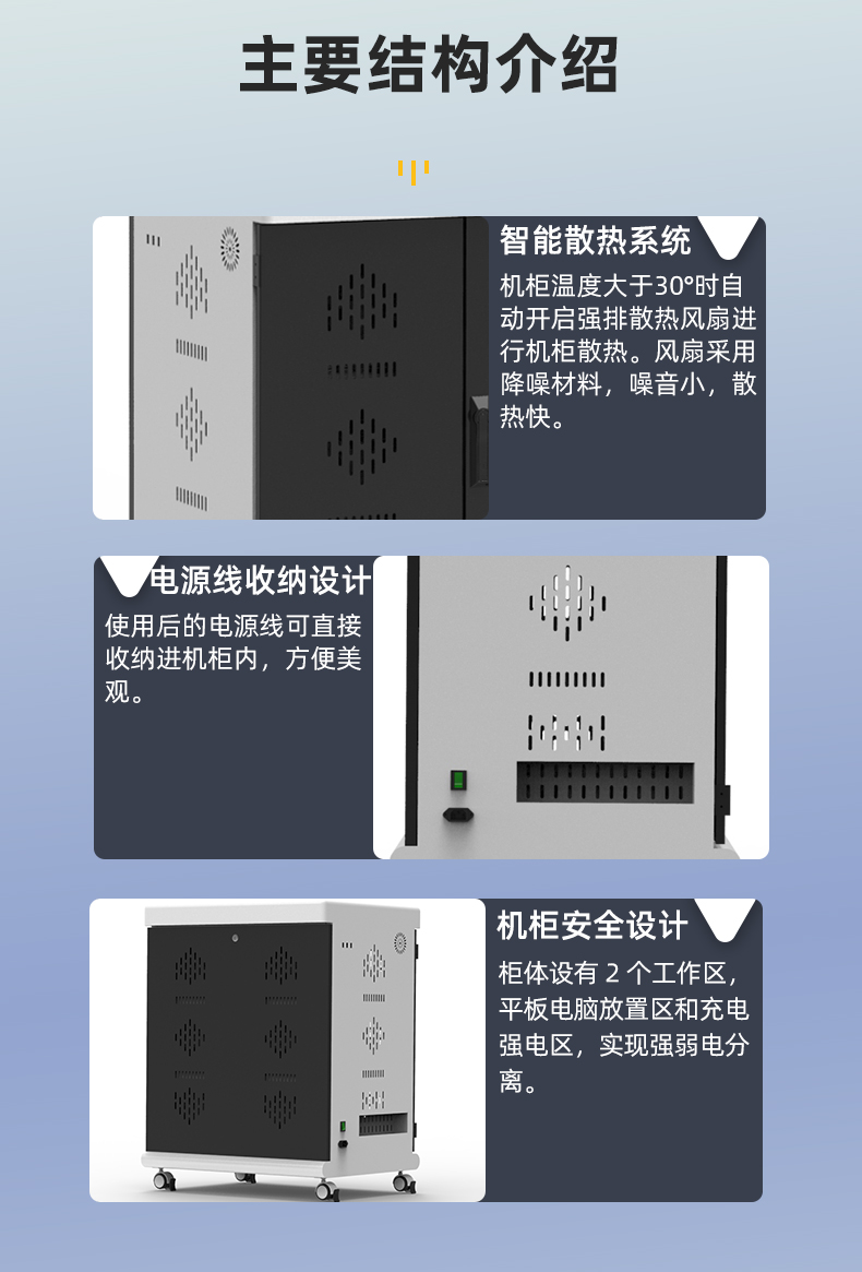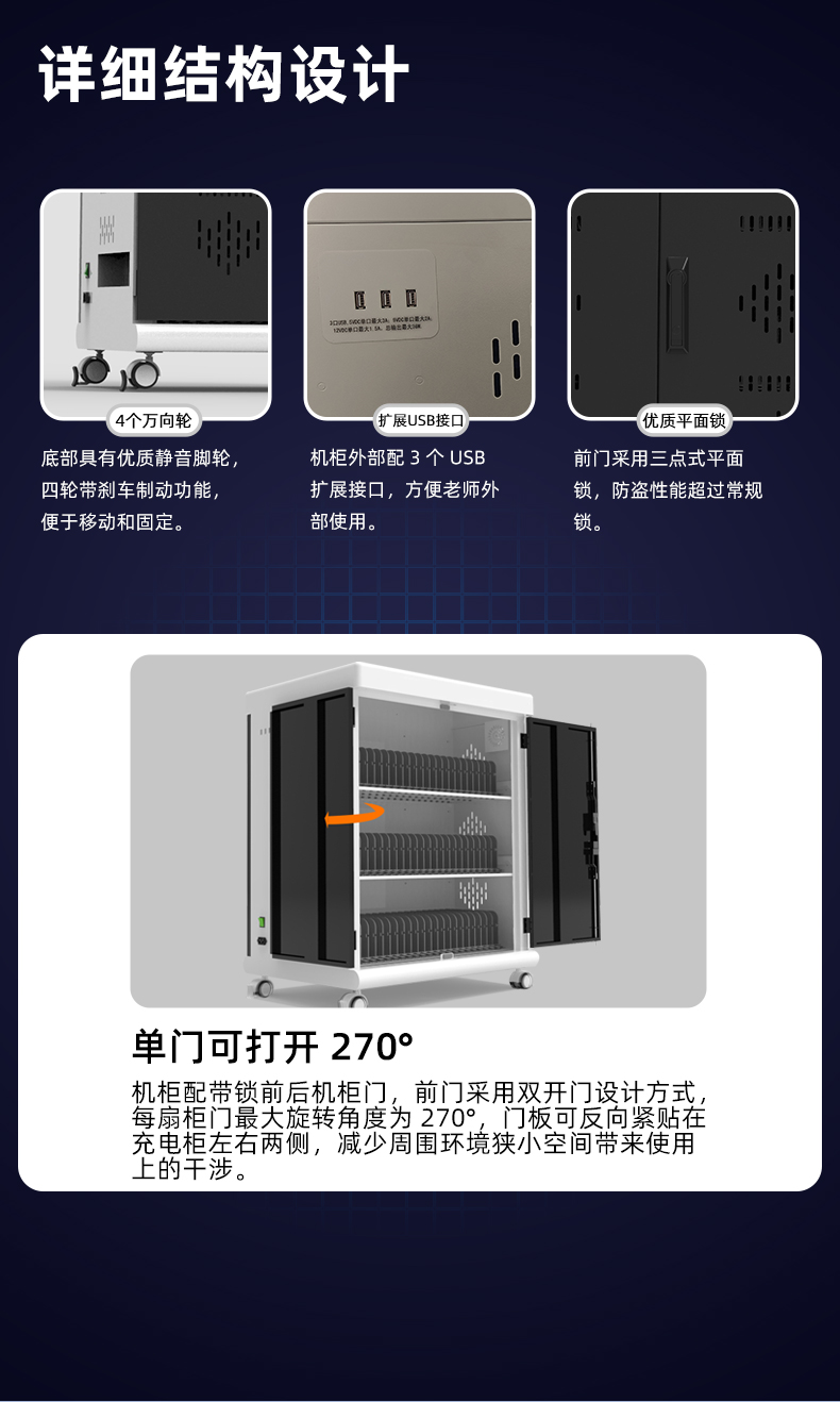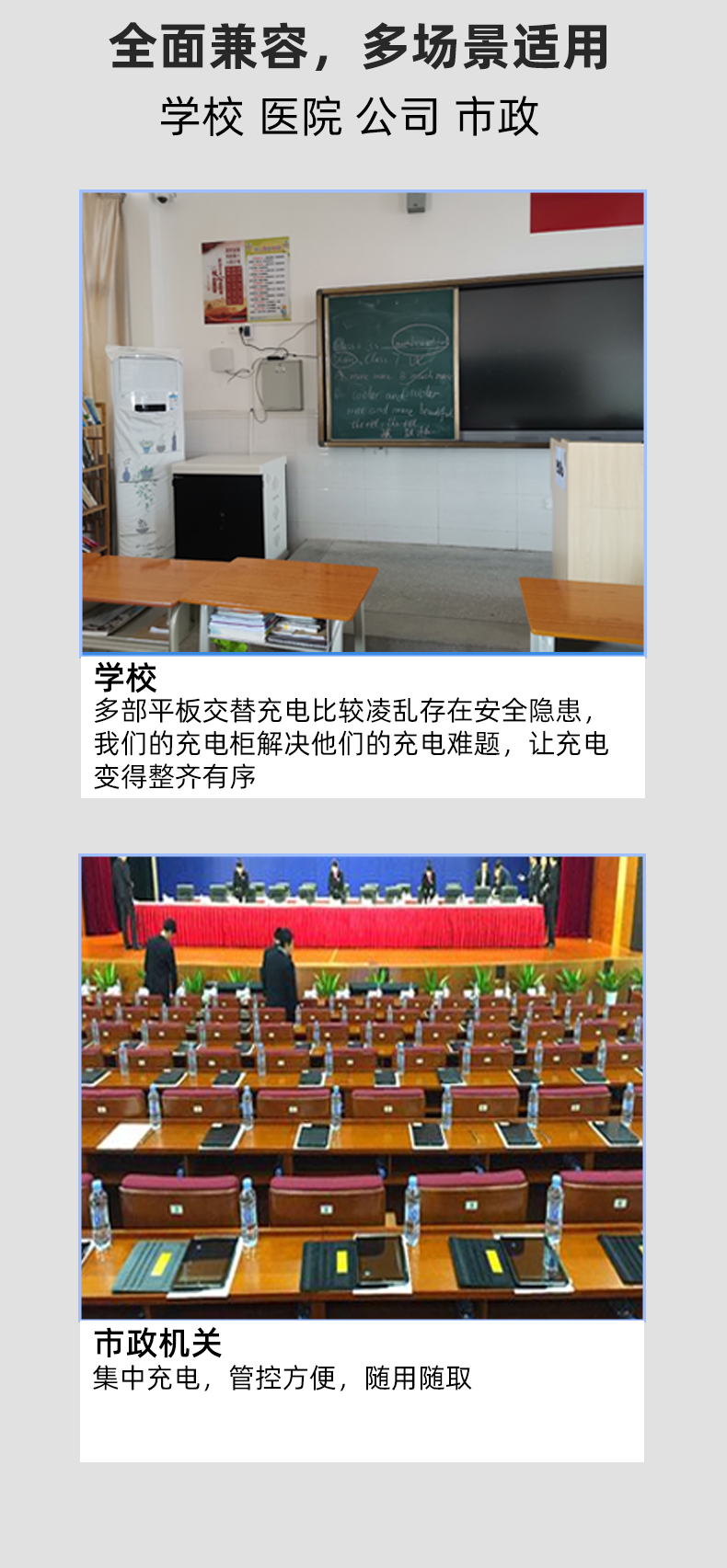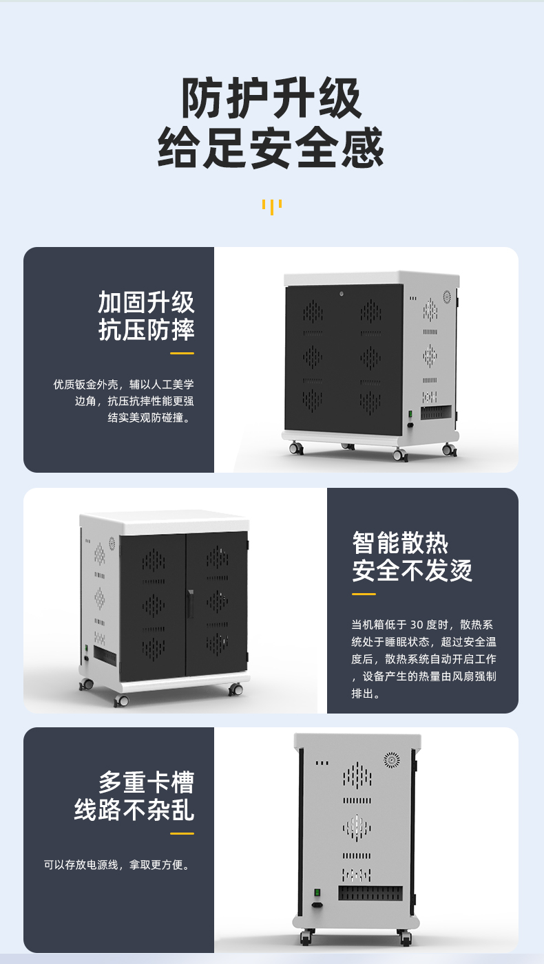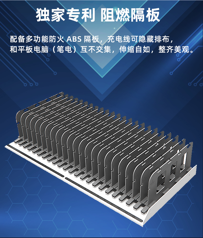 2.擺放整齊:配備多功能塑膠隔板,充電線可隱藏排布,充電線和平板電腦(筆電)互不交集,美觀方便,同時隔板上配有快捷卡位槽,隨用隨取。★★