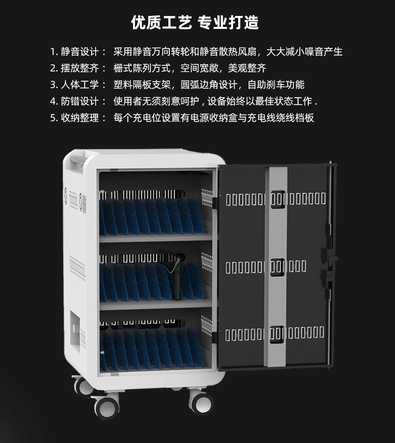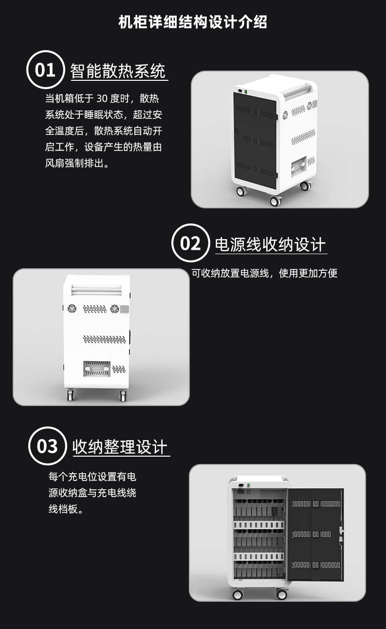 5.收納整理:每個充電位設置有電源收納盒與充電線繞線檔板