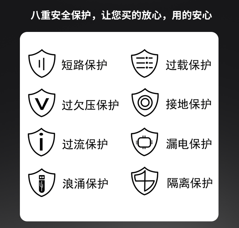 7.欠壓保護:當輸出電壓低于90V時,智能切斷輸出,防止設備因過載而燒毀(S7)